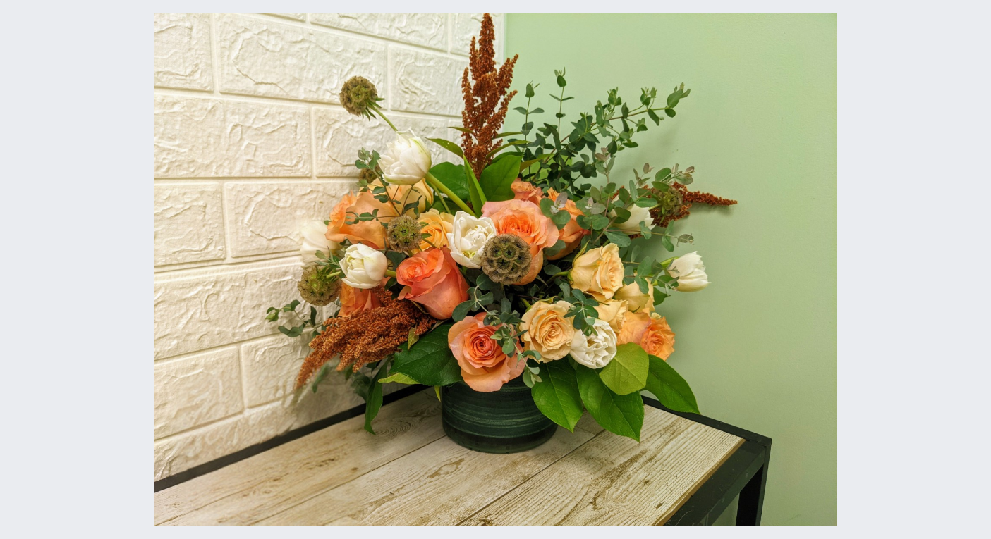 **Photos shown are for inspiration only. Each arrangement is custom- designed with seasonal blooms and may vary in flower type, color and composition. While we honor your selected palette and style no two designs are exactly alike.Your piece will be uniquely crafted with care and creativity. **